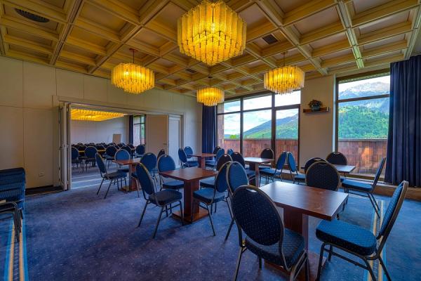 Popis :Na spoločenské stretnutia sú k dispozícií dva Modré salóniky (s možnosťou vzájomného prepojenia), reštaurácia a kaviareň s nádherným výhľadom.Vybavenie kongresového centra